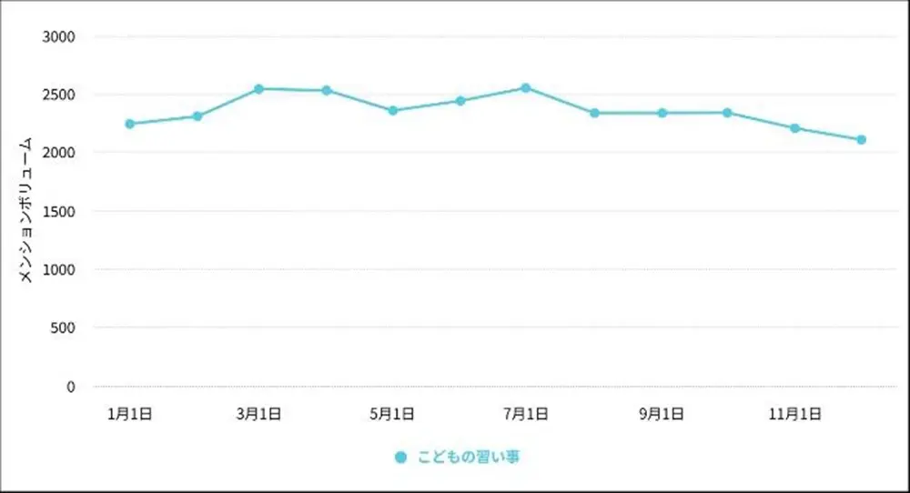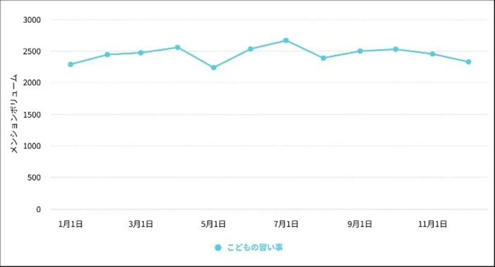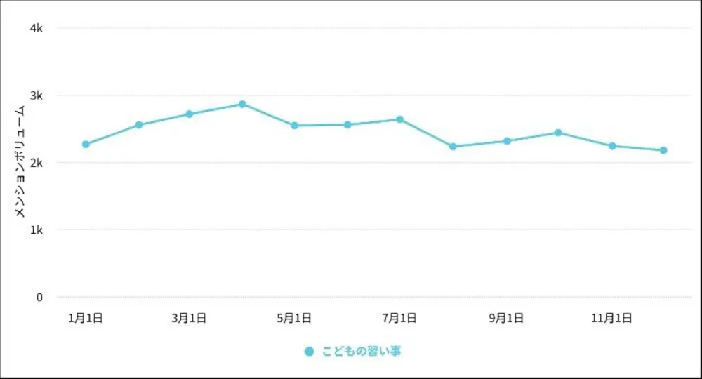 本章では、新学期の習い事に焦点を当て、企業がどのような対策(情報発信・導線設計・サポート整備等)を打てるのかを明らかにするために、まず「話題量が増えるタイミング=需要の波」を確認します。