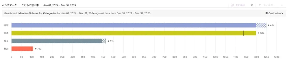 2025年は、送迎・友達が引き続き大きい一方で、費用が+12%、成長が+10%と伸び率が目立ちます。量だけでなく“伸び”を見ることで、ユーザーの不安や比較検討の焦点がどこに寄っているかを早めに察知できます。